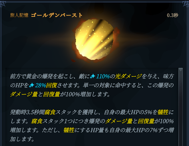 強固な結合:腐食スタックがない状態での発動時、自傷ダメージなし。戦闘中のみ適用。