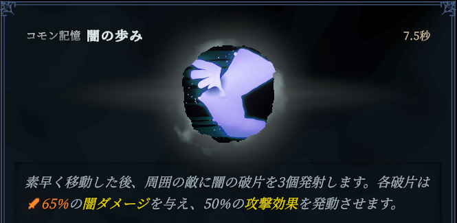 引き続き影の歩みなどの攻撃効果を持つ記憶と非常に相性が良いです。