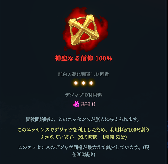 また、浄化の祭壇のドリームダスト回収量もかなり減りました。浄化の祭壇を使用する際は、強化した記憶・エッセンスを変更する際にドリームダストを回収する場合くらいで十分です。
