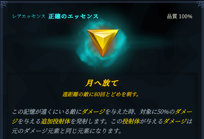 火力運用も視野に入れていくのであれば、ダメージアップ系を優先的に入れていきたいところですが、クールダウンがほぼない=発動回数増える、というところから鋭利のエッセンスなどの毎回火力補助してくれるようなエッセンスもいい働きをしてくれます。