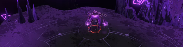 ①第一形態 端にテレポートから直線状に大剣の衝撃波:残HPがだいたい4分の1以下になると無敵状態となり、テレポート後に連続で円形範囲予測が表示され大剣の衝撃波が発生します。予測が表示されてから攻撃が発生するまで猶予が短いため、すぐに範囲外に回避行動をとりましょう。