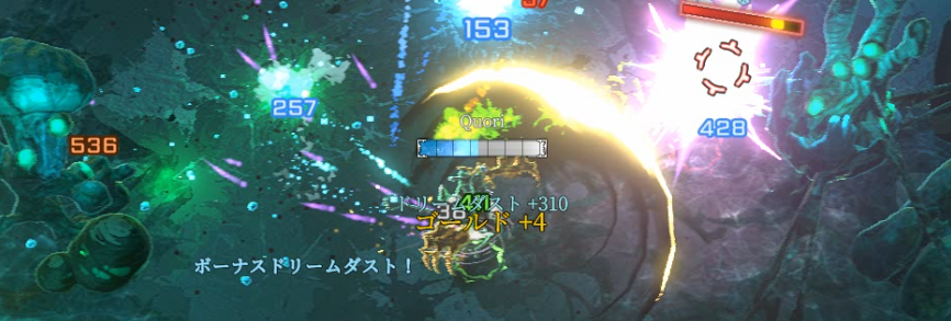 「夜空の断片」と同様に遠距離攻撃が激しく、高耐久のザコも多いです。攻撃判定がしばらく地面に残り続けるような攻撃もあり、気づいたらHPが減っていた、ということが起こりがちです。