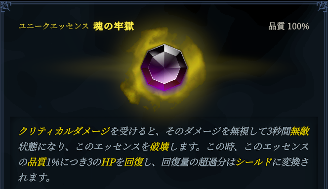 魂の牢獄:クリティカルダメージ時(死亡時)、ダメージを無視してエッセンスが破壊される