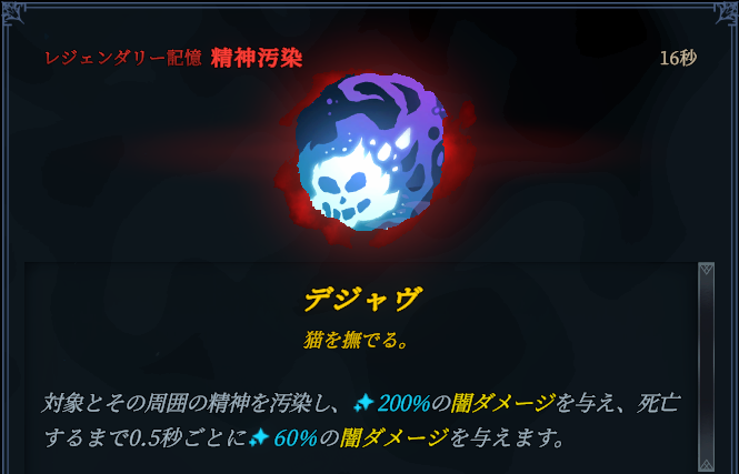 類稀なる天才:記憶使用時に1.5秒間アンストッパブル状態となる。妄想状態解除。