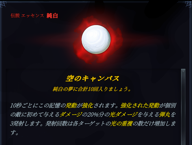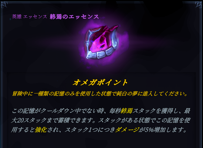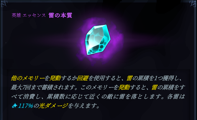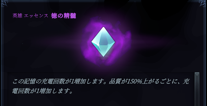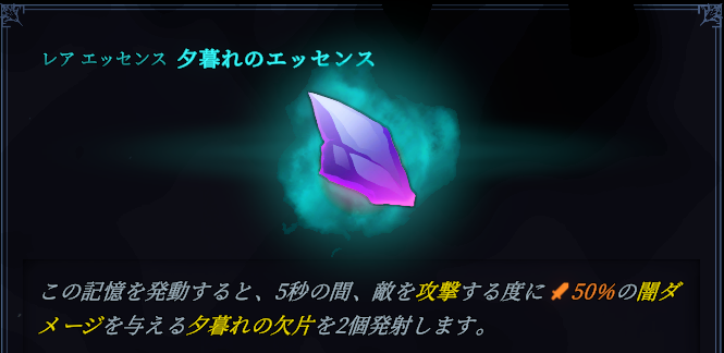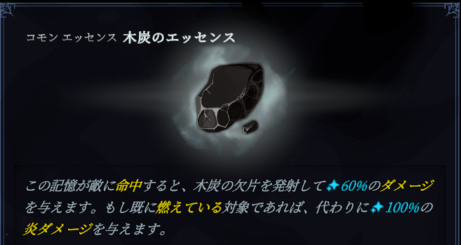 Demo版のエッセンスはこれにて以上になります。製品版になってからどんな記憶・エッセンスが増えるかとても楽しみです。個人的には、旅人記憶のように専用エッセンスが出てきたら「そのキャラでしかできない」ビルドがより引き立つので、楽しそうだなーと思ったりしています。