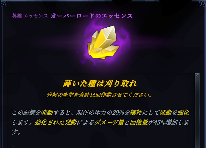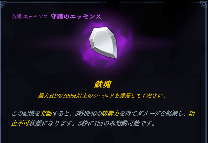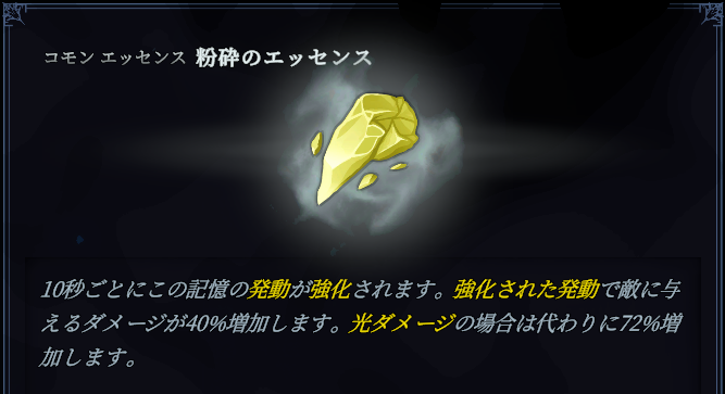 • タグ:バフ(クールダウン / 光属性専用 / エッセンス)