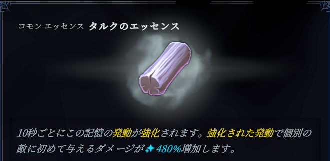 ※記憶一覧と同様に各エッセンスに検索タグをつけてみました。Ctrl + F で「バフ」や「火力補助」などで検索をかけると該当の記憶にジャンプできます。