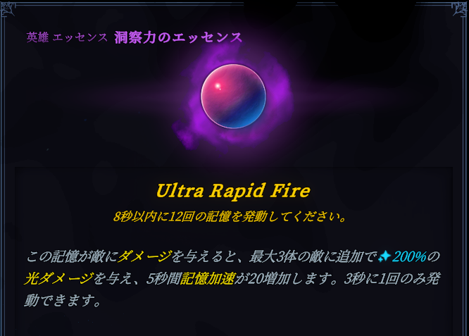 • タグ:バフ(記憶加速)、クールダウン減少、記憶自動発動