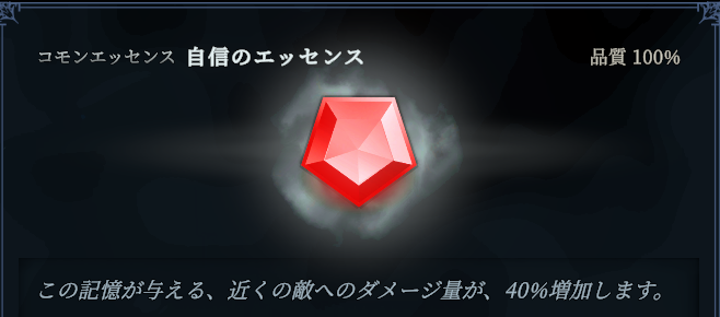 - 手に入れやすい:コモン記憶(最低レアリティ)なので道中で拾いやすいです。デジャヴの枠は別の記憶やエッセンスを割り当てられます。