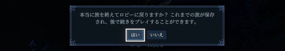 SoDをプレイしていてゲームを中断したい…!ということはありませんか? SoDはビルドや立ち回りがうまくはまれば本当にほぼ無限に続けられるゲームです。ですが、ゲーム中にお仕事や家事など etc. etc. によってPCをシャットダウンする必要が出てくる時もあると思います(私も困ったことがありました)。